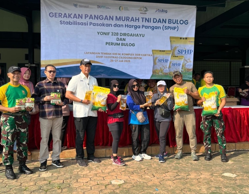 DepokInsider – Sebagai upaya mendukung Asta Cita Presiden Prabowo Subianto dalam rangka mewujudkan swasembada pangan, Perum BULOG dan TNI bersinergi mengelar Gerakan Pangan Murah (GPM) di Lapangan Tembak 600 Meter di Divisi Infanteri 1 Kostrad Cilodong Depok.