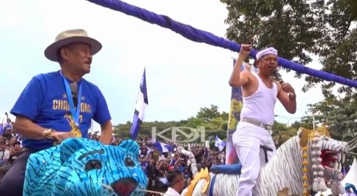 “Enggeus dibere bonus, aman. Isukan diserahkeun,” beber KDM kepada Manajer Persib Bandung, Umuh Muchtar, yang berada di sampingnya saat duduk di Sisingaan.
