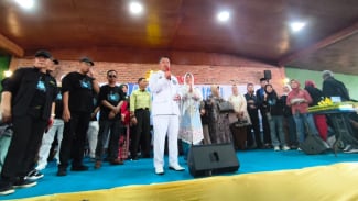 DepokInsider-Ribuan warga antusias mengikuti jalan sehat bersama biduan cantik Ayu Ting Ting. Kegiatan ini digagas duo tokoh masyarakat untuk memeriahkan HUT ke-26 Kota Depok di Kecamatan Sukmajaya pada Minggu, 27 April 2025.