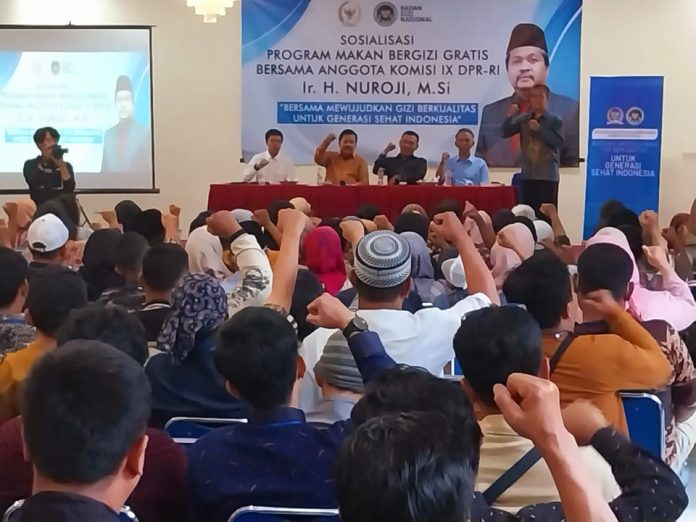 DepokInsider – Anggota Komisi IX Daerah Pemilihan Depok-Bekasi, Ir. Nuroji, bersama mitra kerja Badan Gizi Nasional (BGN) menggelar sosialisasi program Makan Bergizi Gratis (MBG).